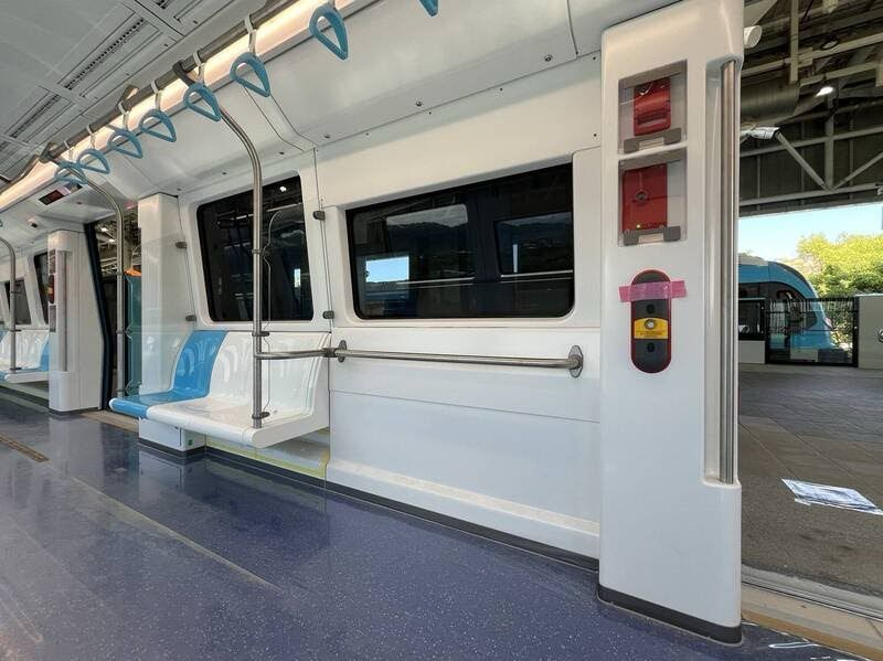 捷運三鶯線車廂內的輪椅停放區規劃較大空間,方便輪椅停靠或移動。(圖由新北市捷運