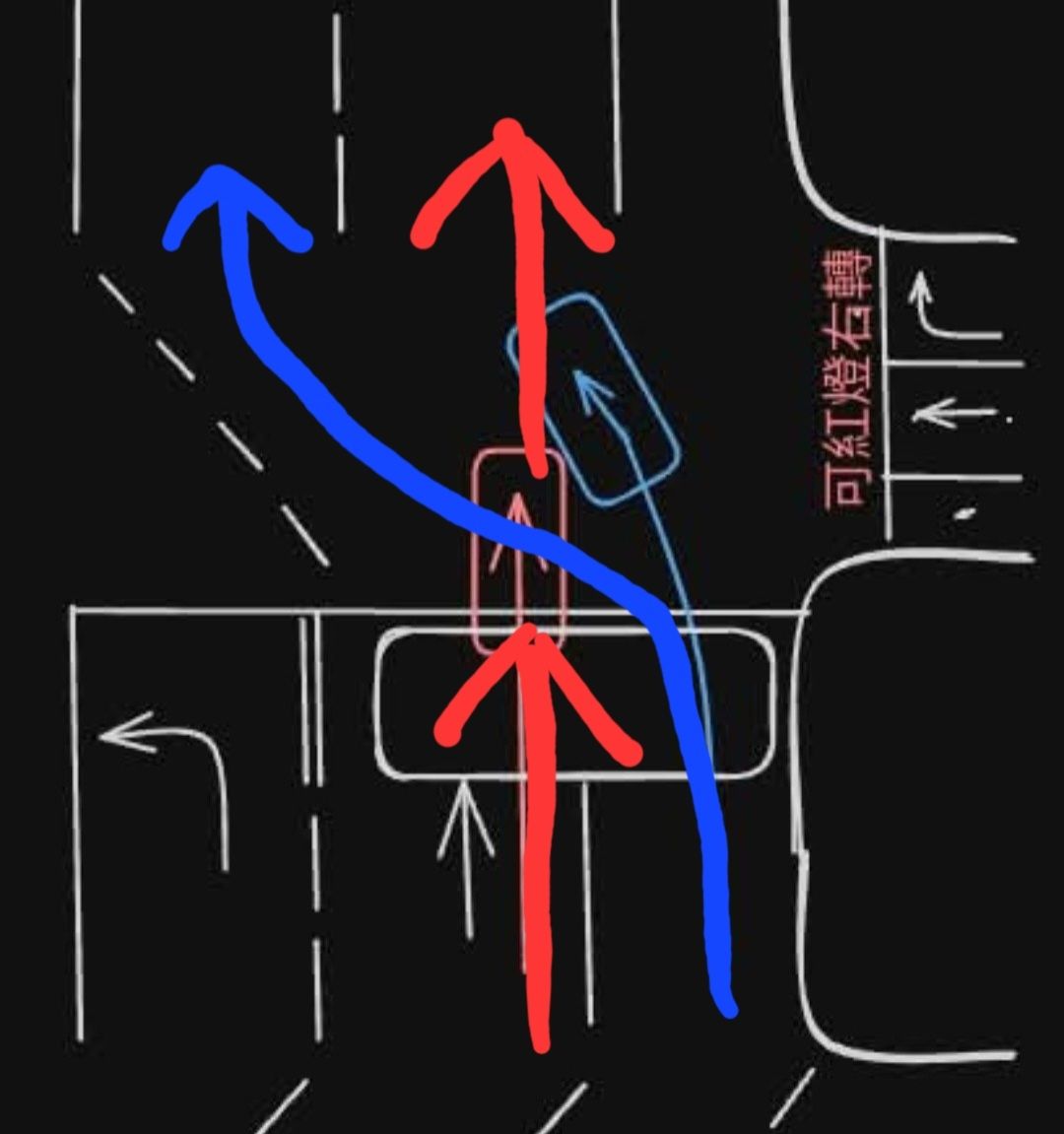 → mussina27: 車道的邊界;以此邏輯下紅車須依指示前行至前方內側車 02/27 23:03