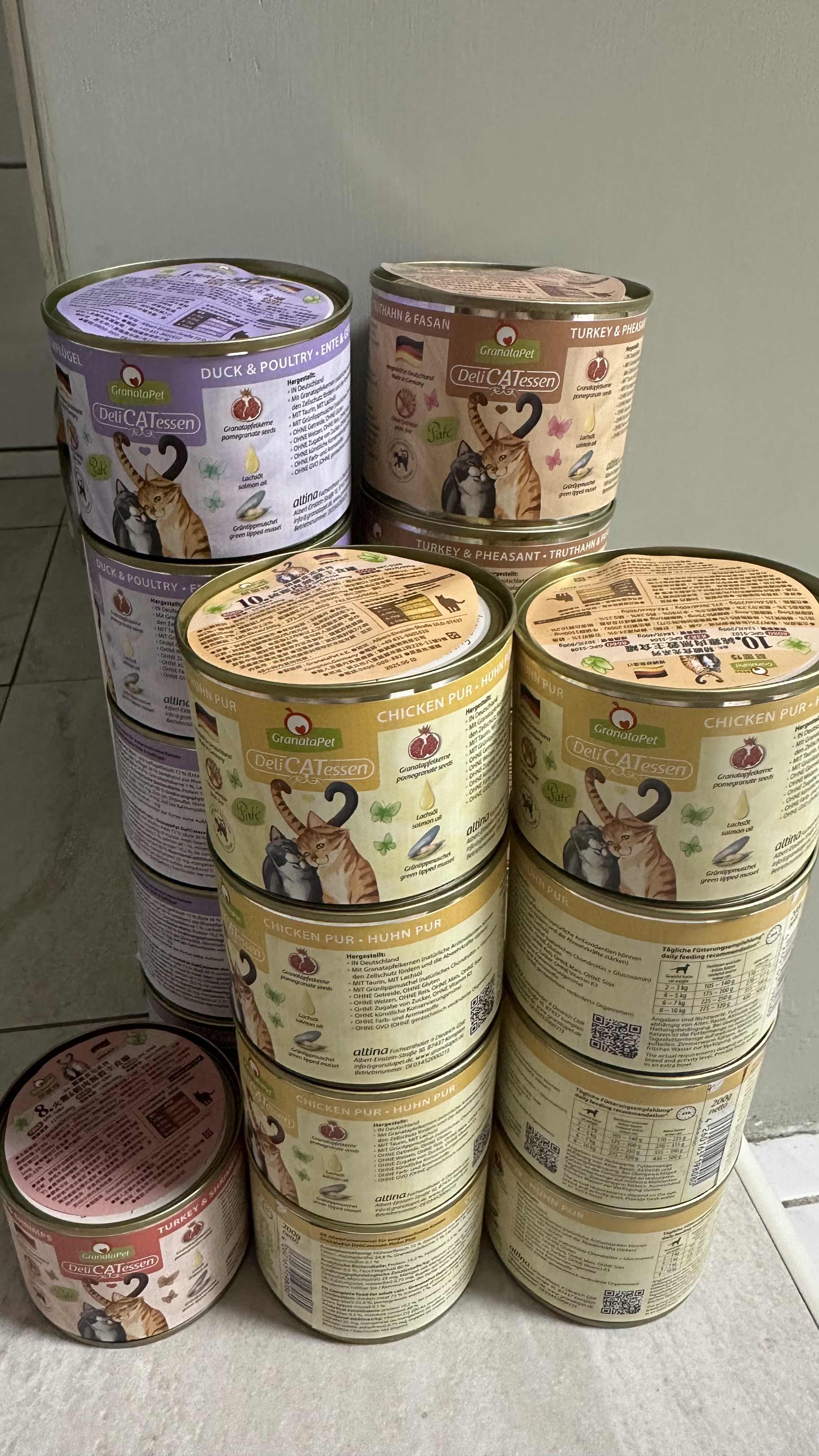 #標題應為 [交易/OO],發文完請再一次確認標題格式無誤。 #發文表示您已讀過置底板規,一旦發生違反板規之情事,同意可能受到板規處罰。 #為提高防詐意識,交易前請搜尋買家ID或板上"詐騙"關鍵字,勿與新帳號加line做交易。 #看完請用[CTRL+K]刪除這些預設文字。 ------------------------------------------------------------------------ 物品名稱: 葛蕾特精緻食光主食罐 尺寸大小與規格數量: 200G 1. 純雞肉 *8 2027/12 2. 火雞雉雞 *5 2027/11 3. 鴨肉禽肉 *5 2027/12 4. 火雞蝦肉 *1 2027/12 到期日: 商品描述: 家貓不愛吃 故售出 照片: https://files.catbox.moe/dp4uva.png