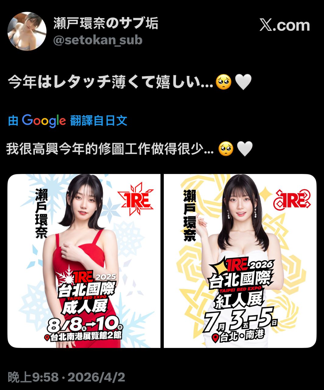 推 fxxxkup: 修圖的真的是...,隨便去女優的個人社群平台挖一張都比 04/01 18:11