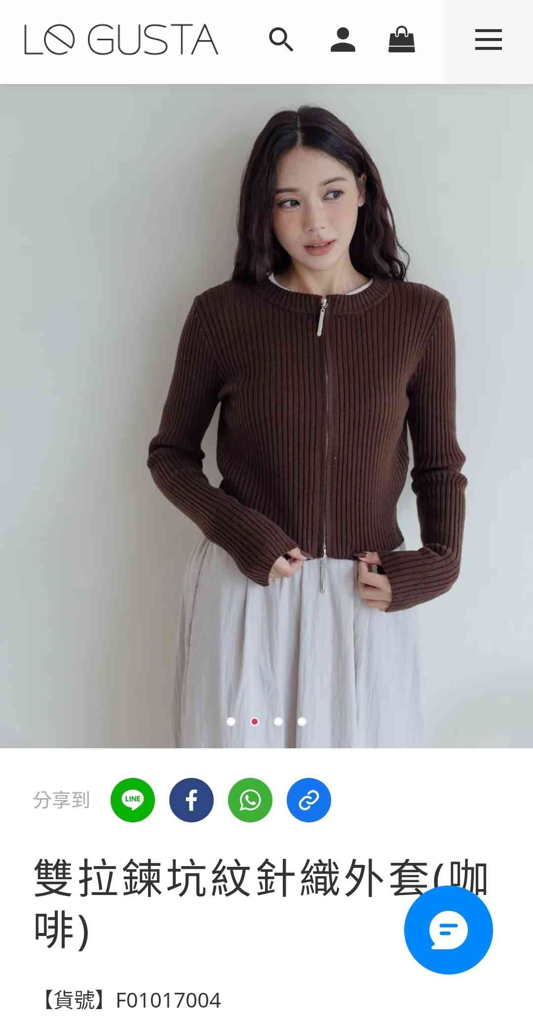 推 ji09052208: LEGUSTA 雙拉鍊坑紋針織外套(咖啡),售$500,全新 02/19 16:57