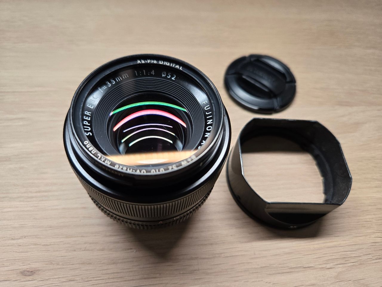 【物品內容】Fujiflim XF35mm F1.4 【希望價格】9000 【詳細說明】2017年億華購入平輸,盒裝配件齊全,鏡身、遮光罩有使用痕跡,附B+W保 護鏡 。 【交易地區】台北(需配合時間)面交、台中、彰化面交 【聯絡方式】站內信 https://i.mopix.cc/JMFvbk.jpg