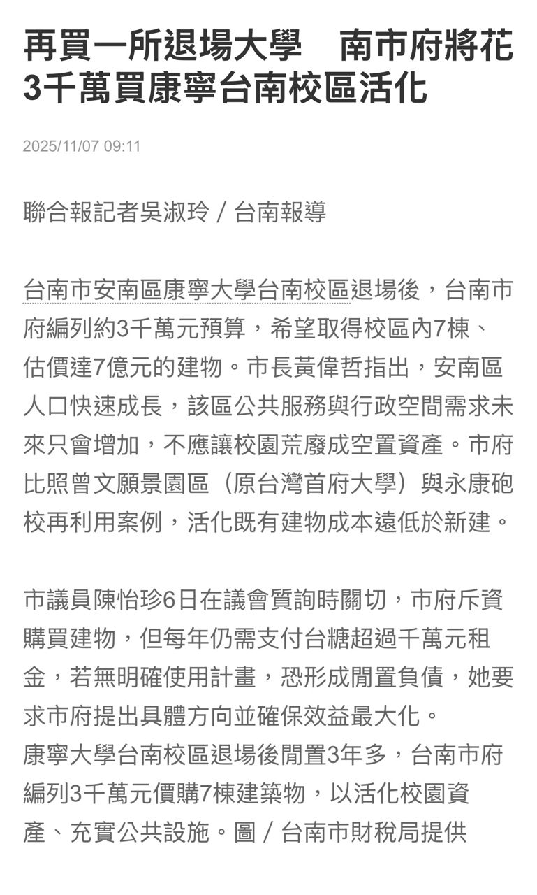 推 narlucese: 身為台南人真心覺得市長只在乎賺錢,不在乎在地的 02/10 13:55