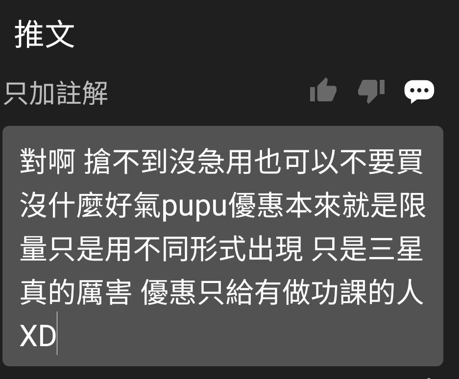 → aaz957658 : 因為有些人不會用折扣碼,用原價買那三星就賺了 03/07 20:17
