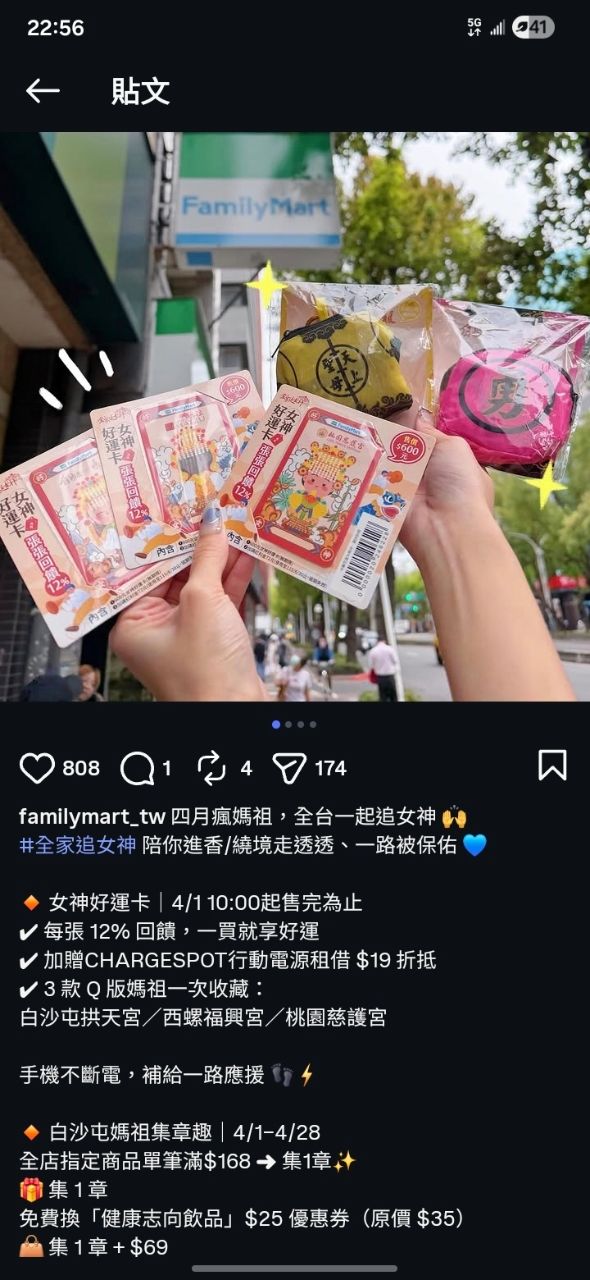 → kevenshih : 明天10點全家女神卡一張600,買兩張好像可以觸發加 03/31 22:57