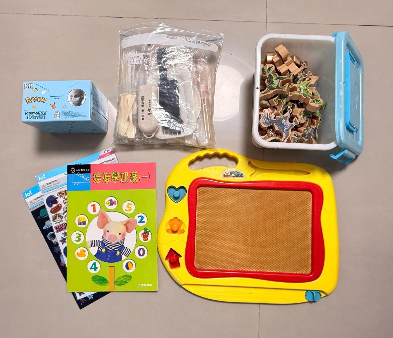 貼紙、加減法練習簿…