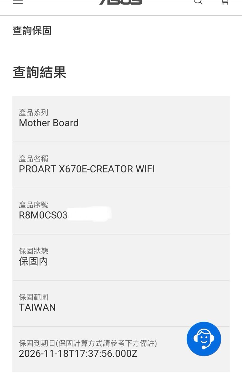 主機板保固到年底,其餘無保